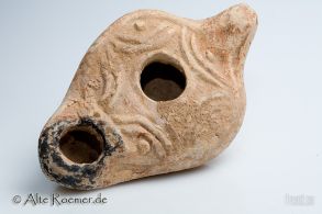 Kaiserzeitliche Öllampe mit Hahnrelief