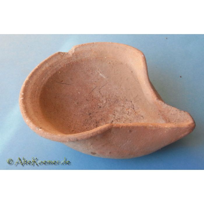 | Zustand: | Vollständig, am Ausguß stellenweise restauriert. Wunderschöne Sandpatina. Perfekt erhalten bis auf kleine Stelle am rechten Rand (auf 13 Uhr). Leichte Rußspuren an Dochtmulde. Leicht asymetrisch (Ausguß weiter nach rechts versetzt). |