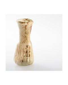Römisches geripptes GlasfläschchenKleines Glasgefäß, typisch für antike Haushalte der Levanteküste. Römisch bis Spätrömisch. Mit elegantem Rippendekor an der Außenseite. 2. bis 5. Jh. n. Chr.